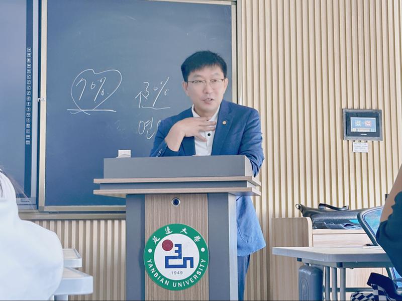 院长朴银姬教授和朝鲜语言文学专业金哲俊教授,开展主题讲座。